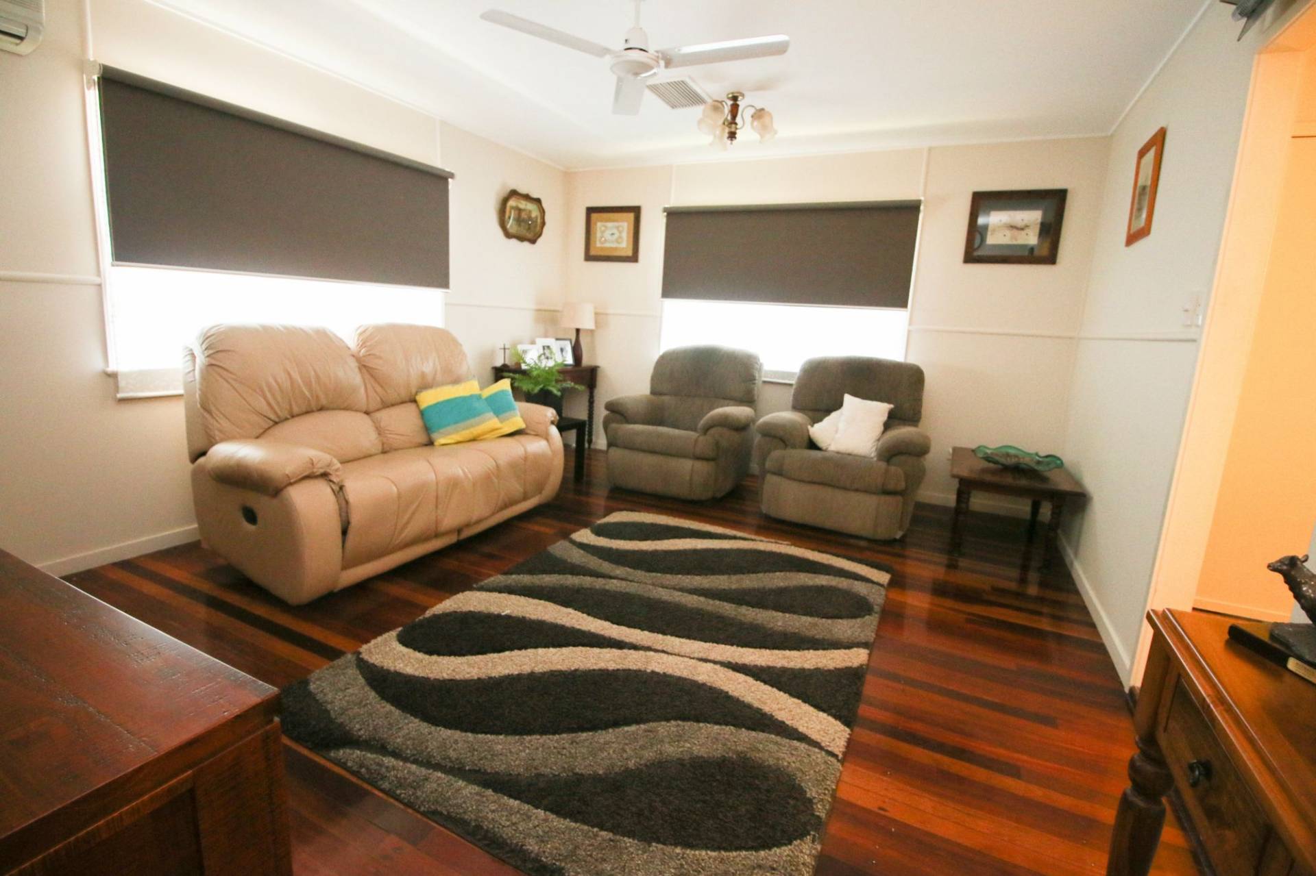 • Three good size bedrooms with plush carpet, fans