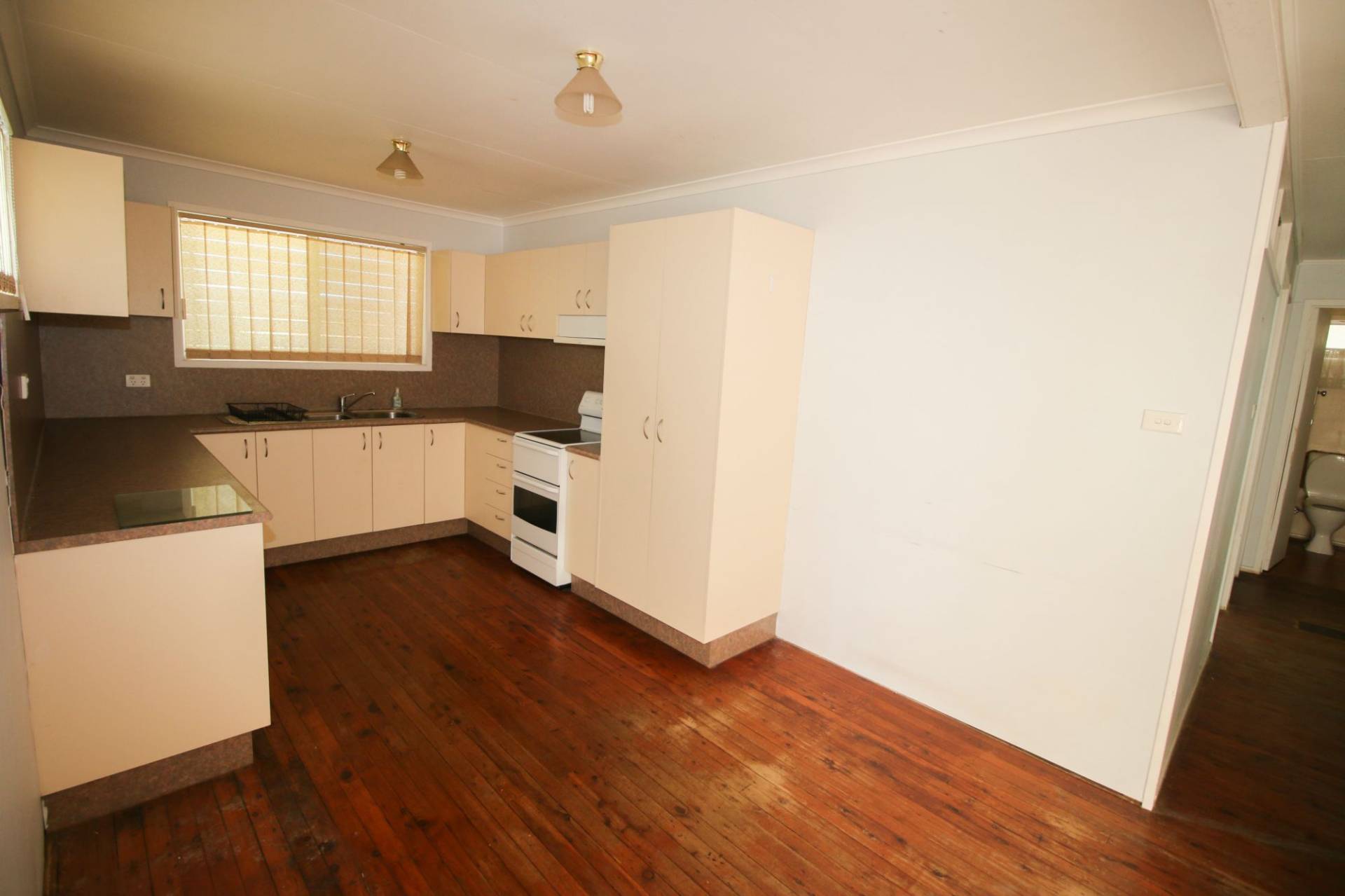The home features hardwood boards throughout- they are already ready to polish in the lounge and lift the carpets in the bedrooms and they will be ready to go. Plus a big internal laundry with room for extra cupboard space.