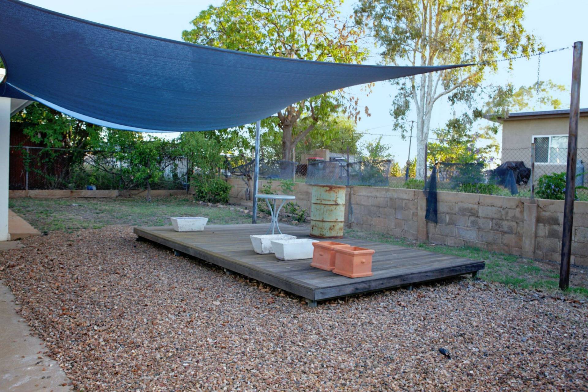 Deck area out the back, garden shed