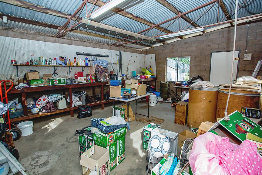 Fully fenced block with side access to the back yard, double carport & powered shed