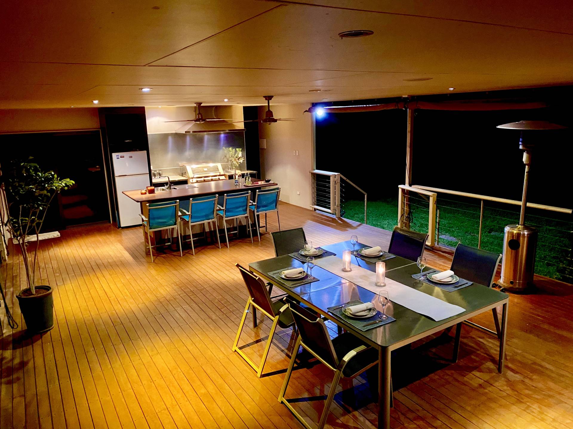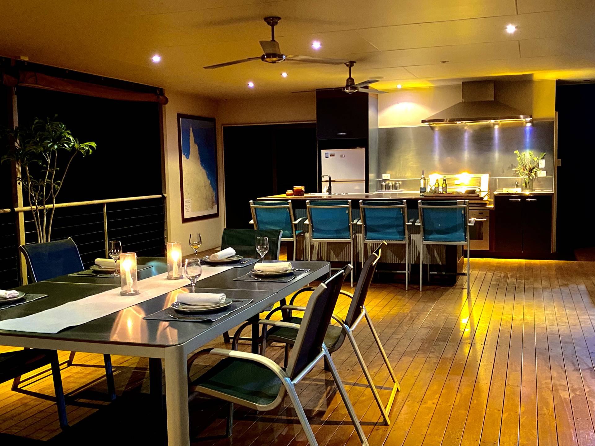 • Inbuilt ceiling sound and movie projector system that transforms the area into an outdoor theatre and the best Grand Final viewing location!