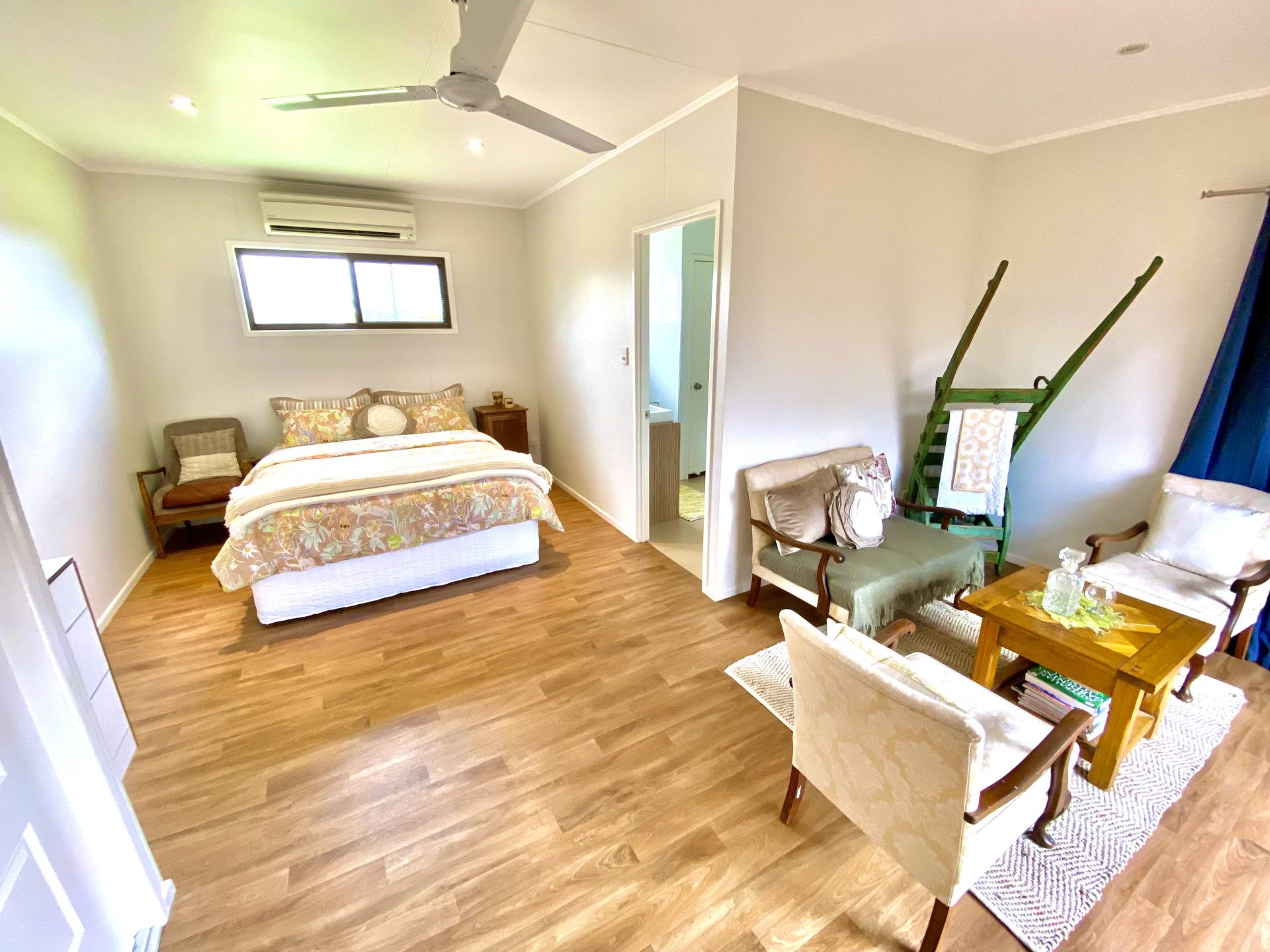 • Bathroom accessible through the main guest room and external entertainment area