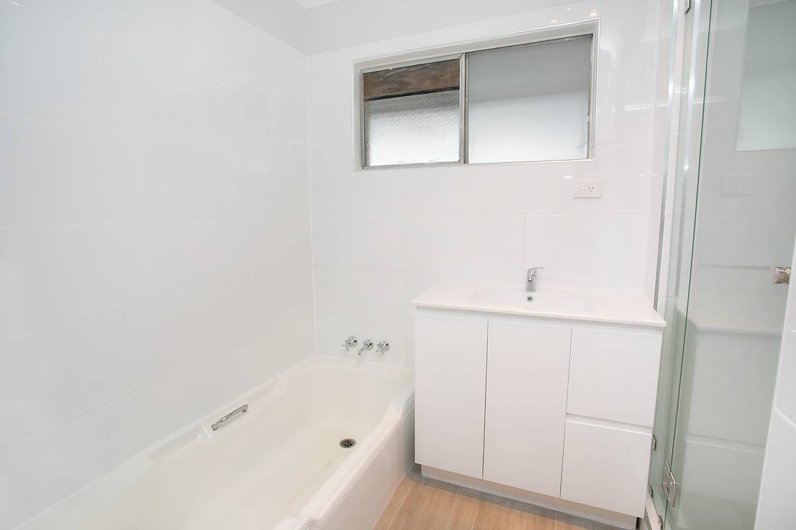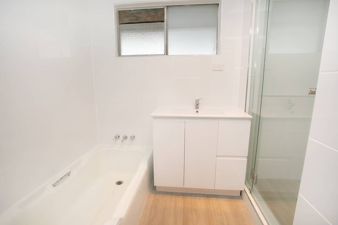 Family sized bathroom with separate shower, tub & toilet plus internal laundry
