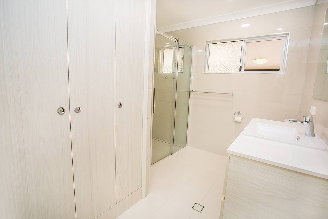 Fresh bathroom with extra-large shower, modern luxury vanity, second toilet, brand new internal laundry & oh so much storage!