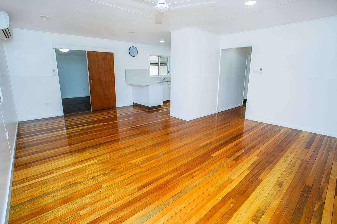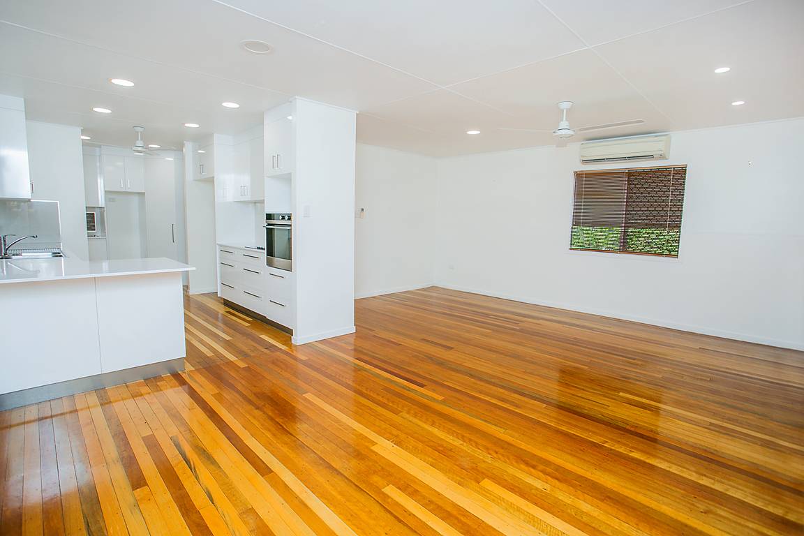 Huge open living area with stunning solid timber flooring (2 splits in the living & dining area)