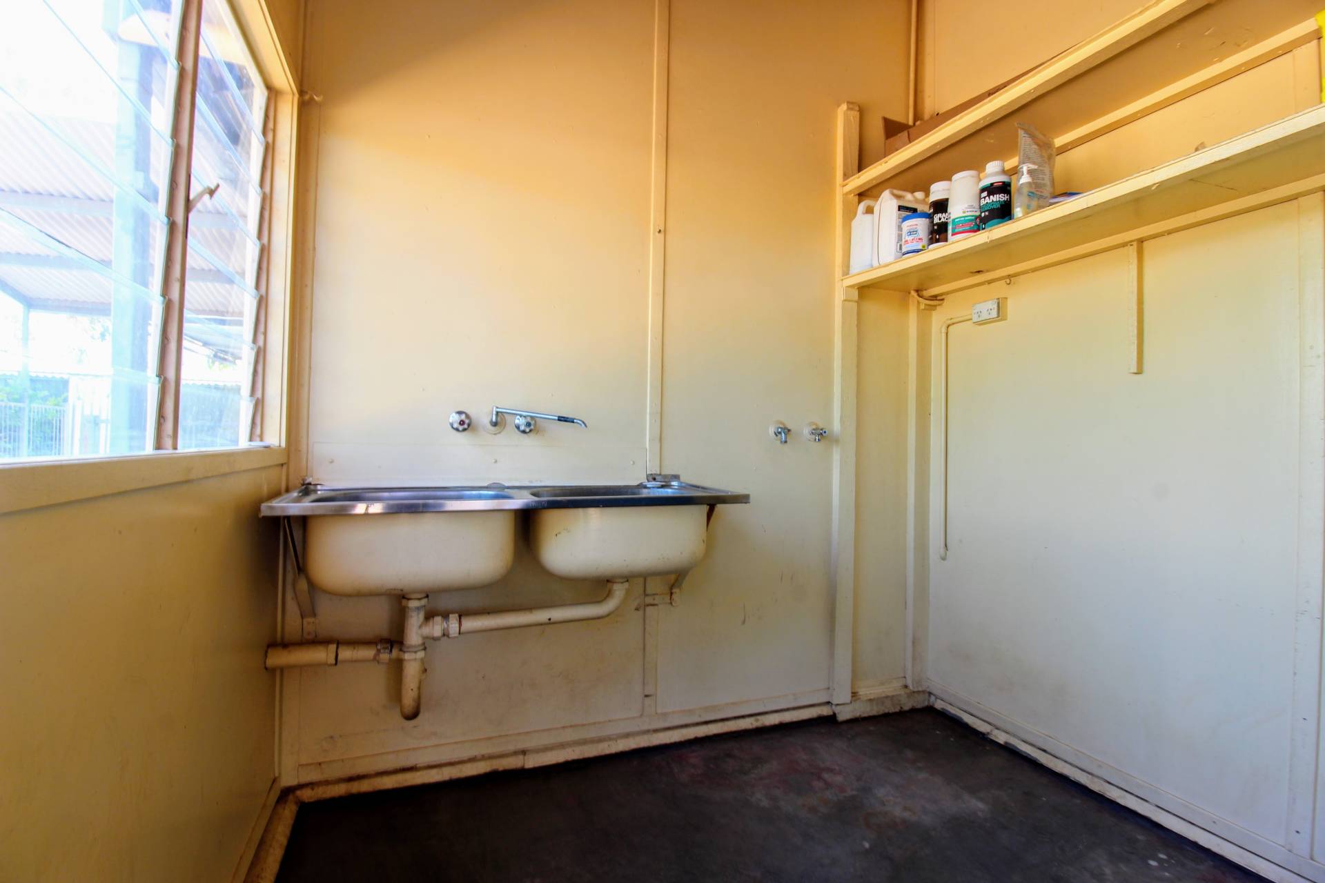 - Outdoor laundry and storage room
