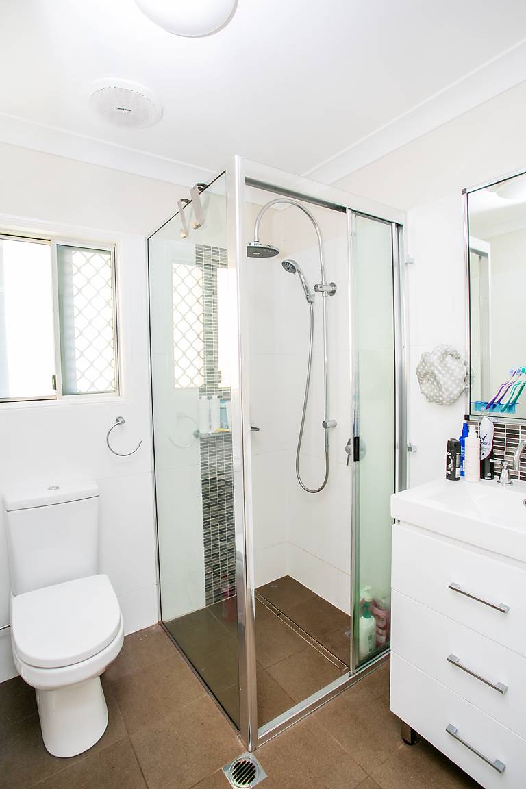 4 bedrooms, all with built in cupboards, ceiling fans & splits