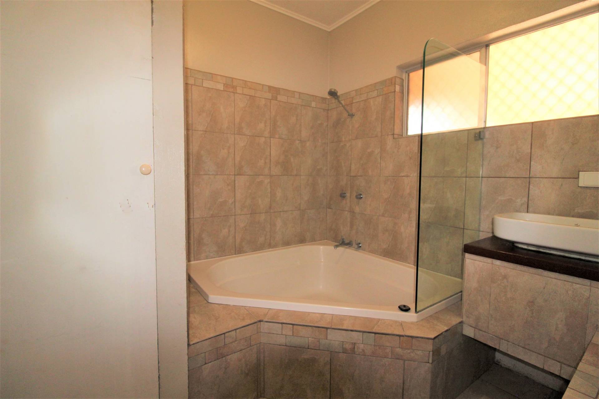 - Modern bathroom and laundry with large tub