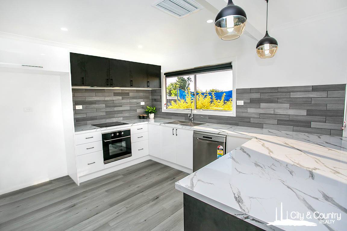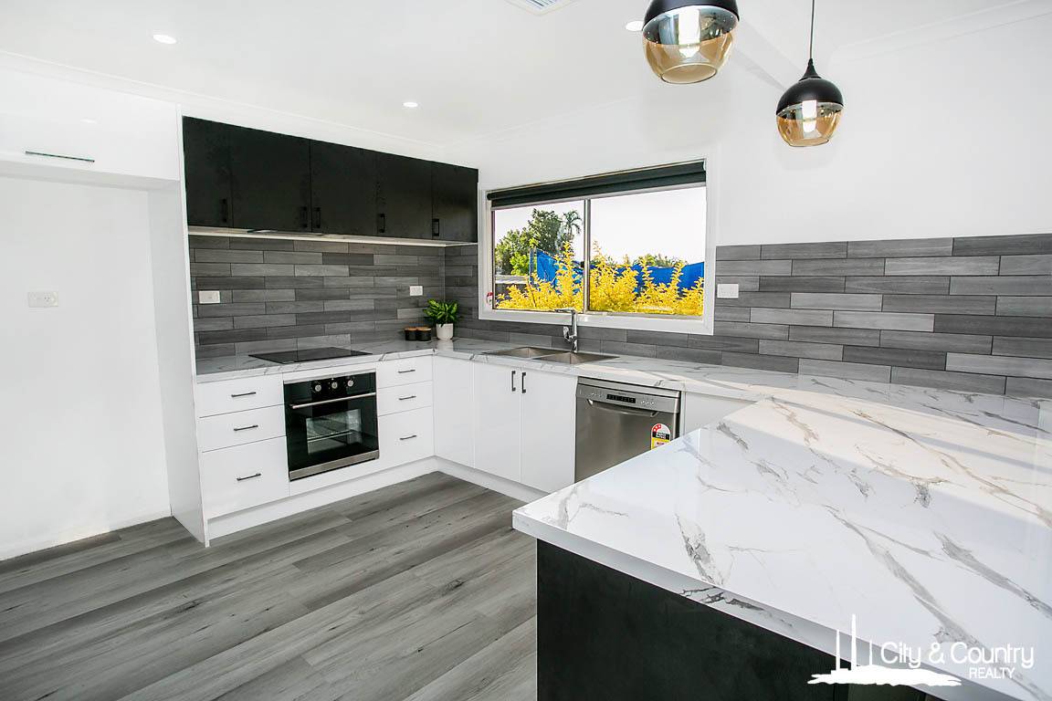 Inside, be welcomed by the large, open plan lounge/dining area. Freshly painted and new floors, it opens this space right up. The kitchen is a guaranteed showstopper, brand new with breakfast bench, electric cooking appliances, dishwasher and loads of cupboard and bench space. The large internal laundry could also be used as a butler’s pantry with loads of further storage space.