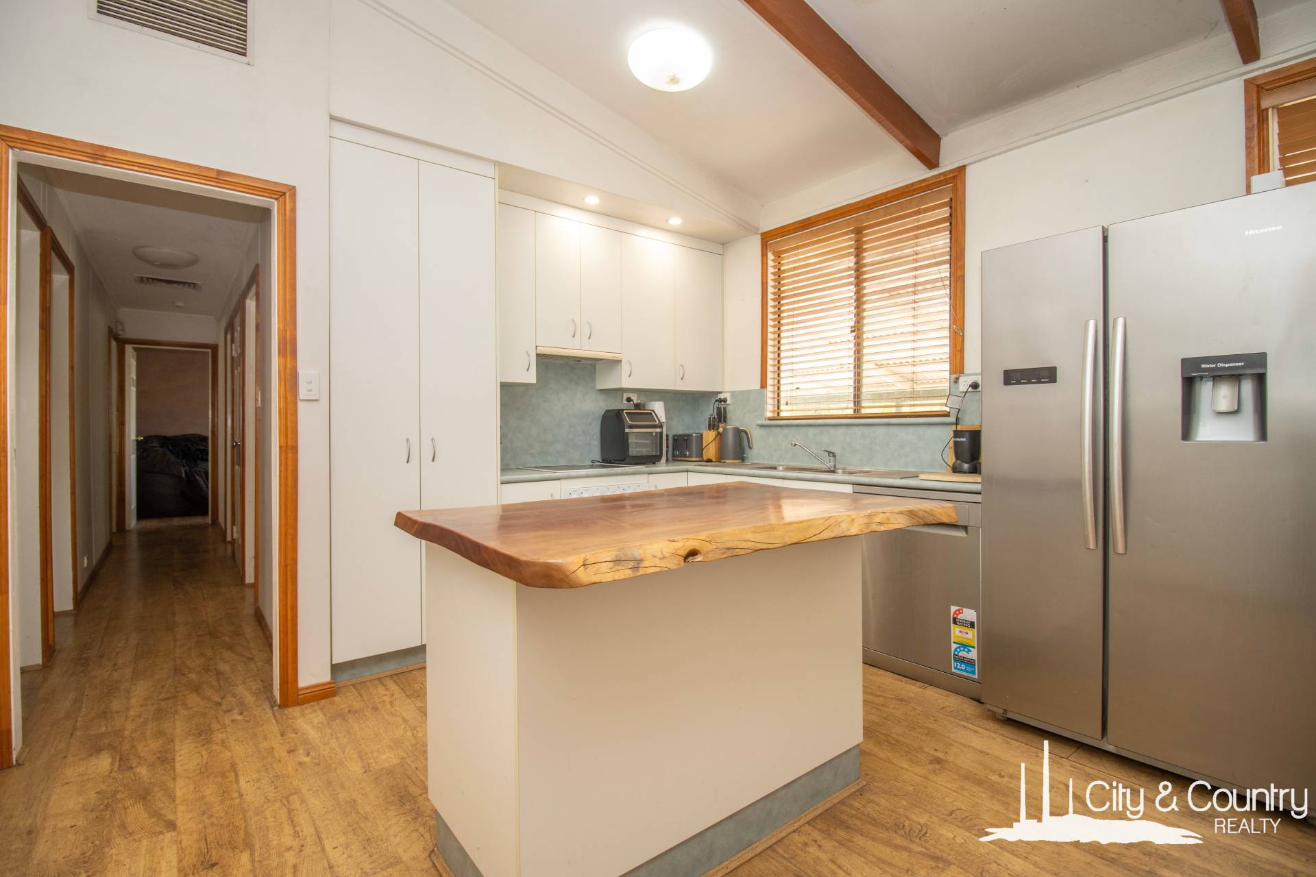 The three bedrooms are all a good size, with lovely deep windows and built-in wardrobes in 2 rooms. Fully split airconditioned throughout the home. The family bathroom features separate bath and shower in neutral tones. Plenty of storage in the laundry area.