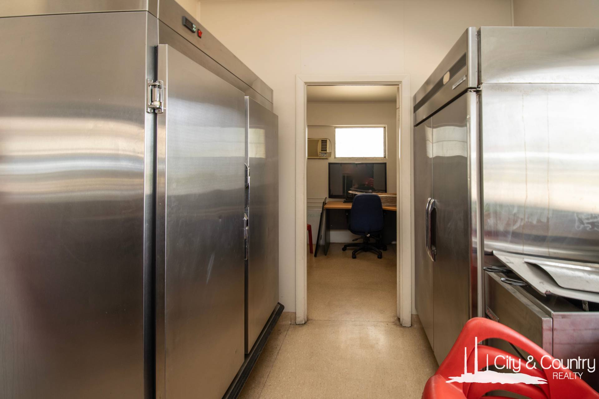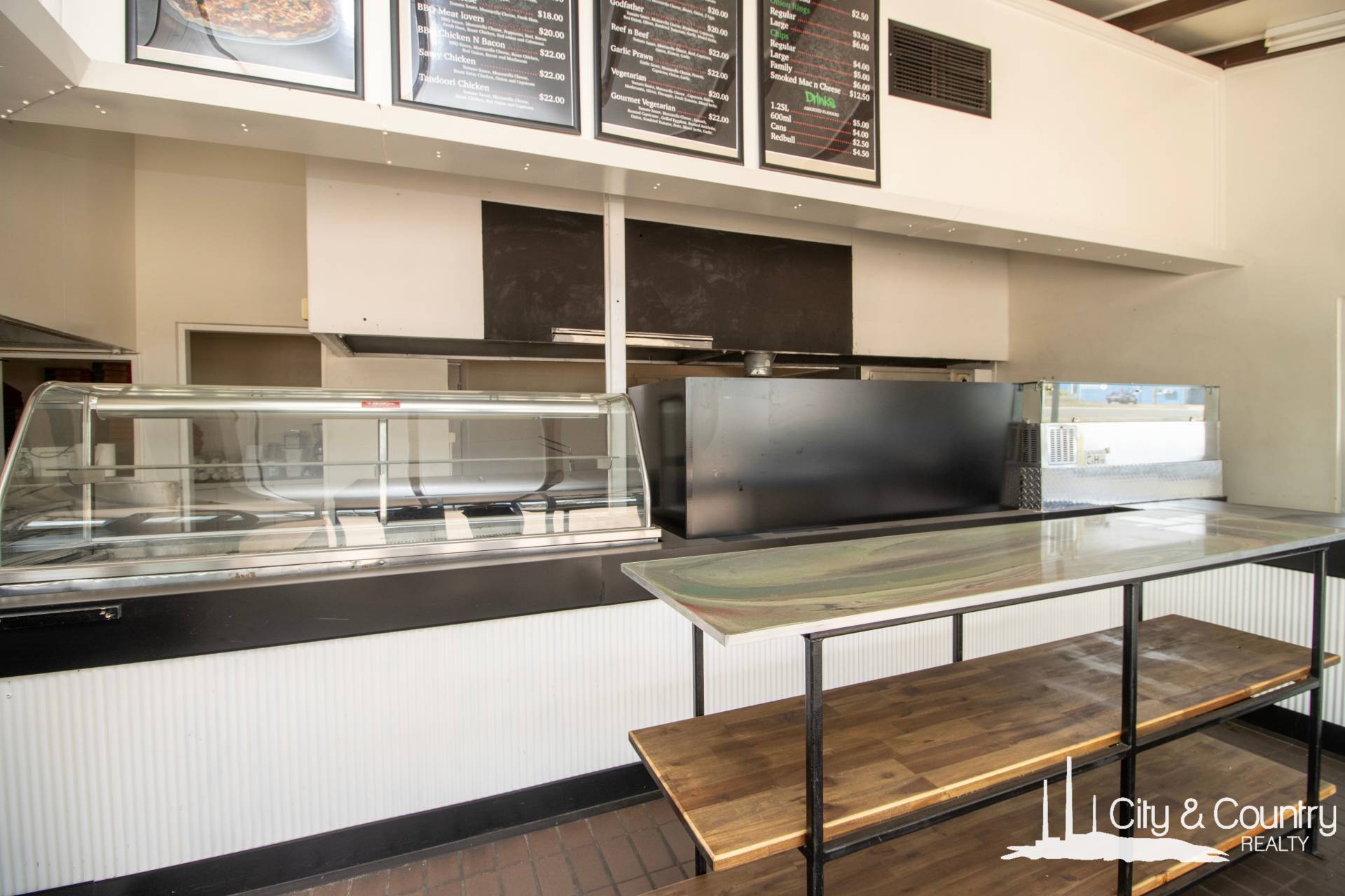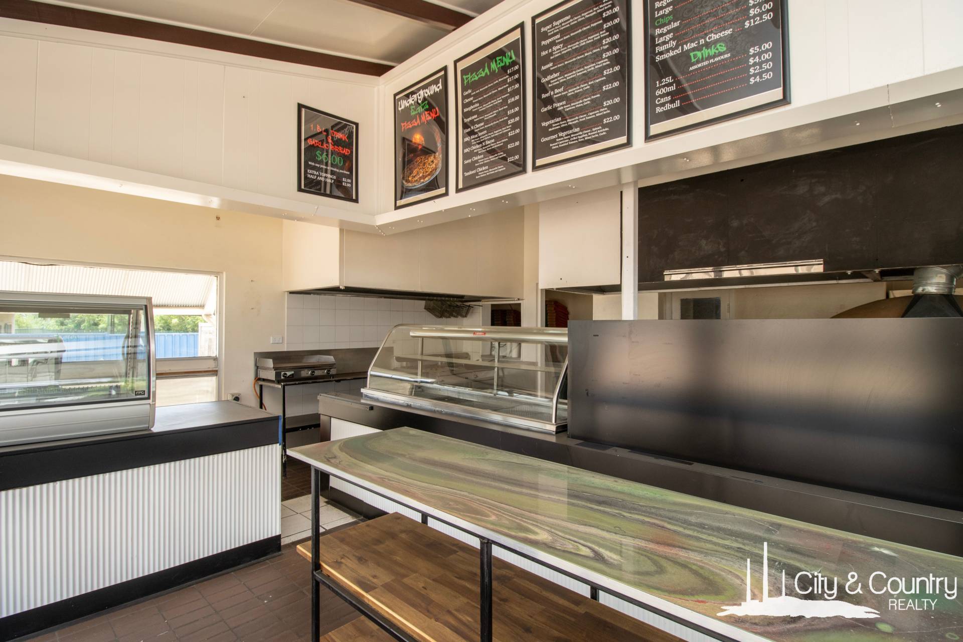 Step inside to discover a welcoming foyer with soaring ceilings and air conditioning. The interior features two cooktops, a bain-marie, exhaust fan, and built-in deep fryers. Towards the rear, you'll find a well-appointed staff office with refrigerated cooling, as well as separate his and her toilets. Additionally, there's a spacious storage room equipped with a freestanding fridge/freezer combo and warming unit and a generously sized commercial kitchen complete with a walk-in cold room and ample bench space.