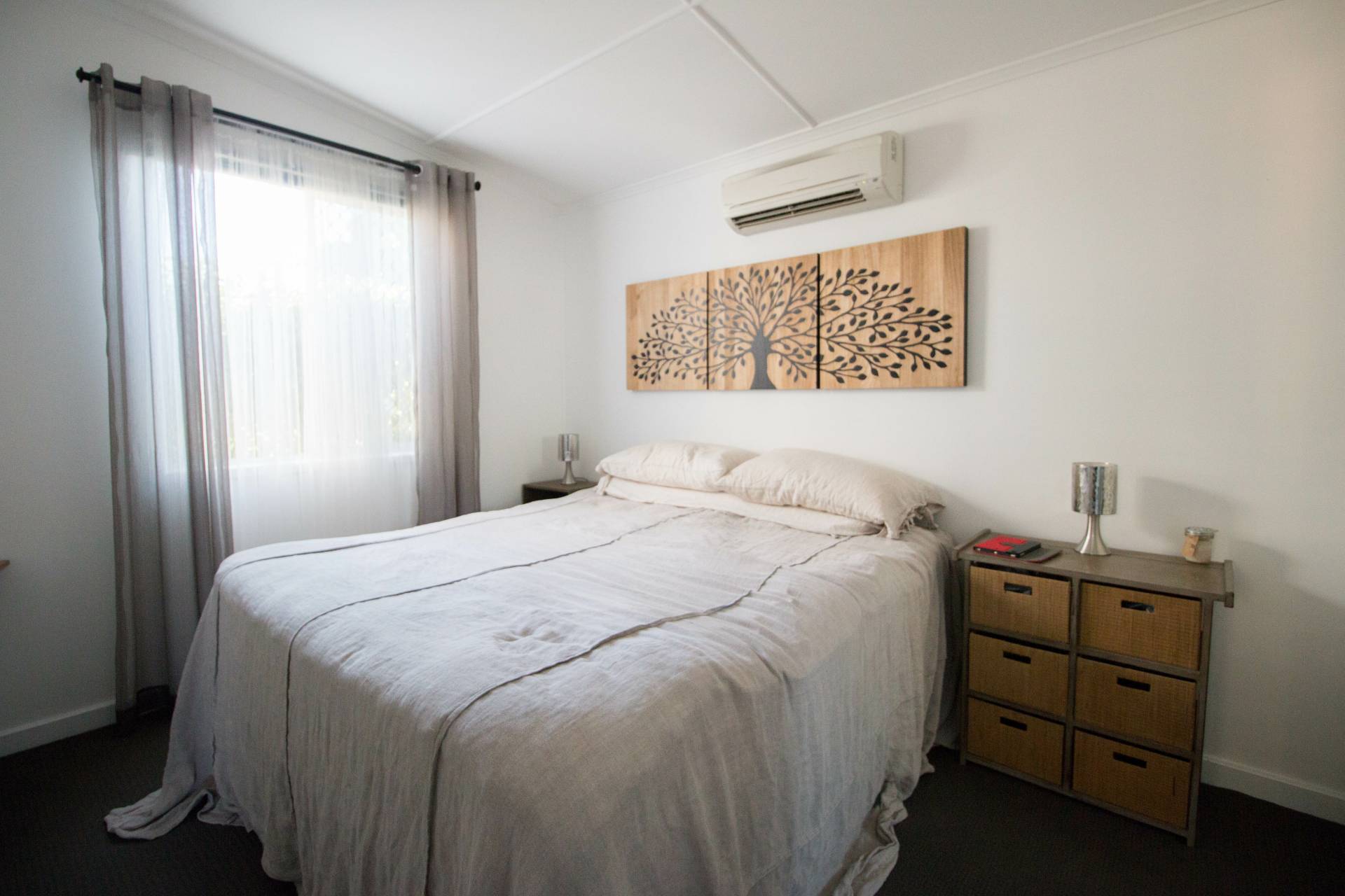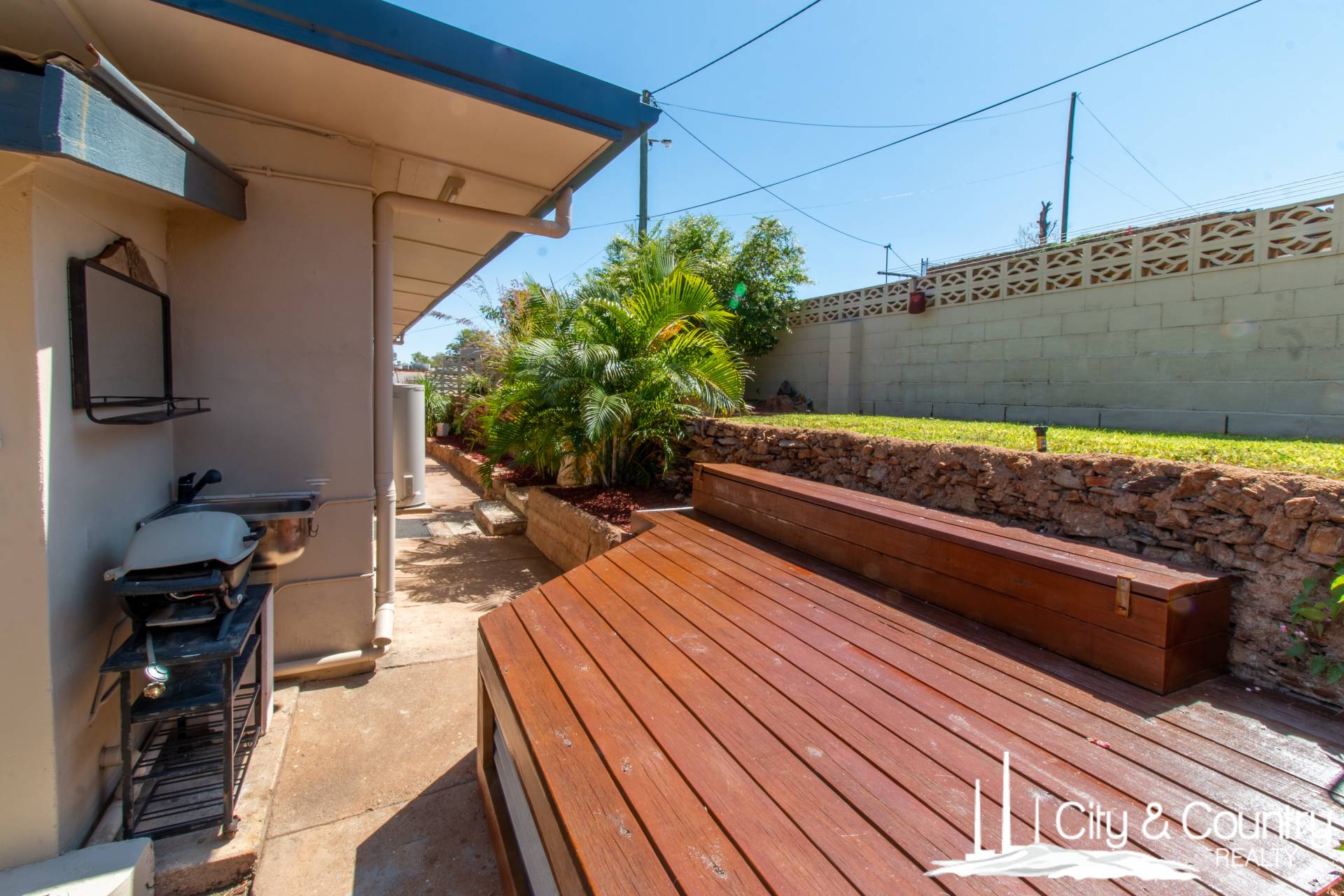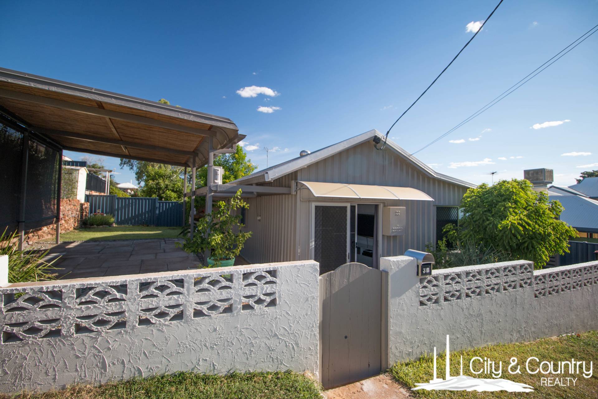Unit B offers 2 carpeted bedrooms with air conditioning and built-in wardrobes. The main bathroom features a shower, combined toilet.  There is an external laundry with plumbing for an internal laundry and linen cupboards. The large tiled open-plan kitchen and living area includes split system air conditioning and ceiling fans. The fully fenced yard has a single carport, a large entertainment area, irrigation and a low-maintenance yard, with garden shed.