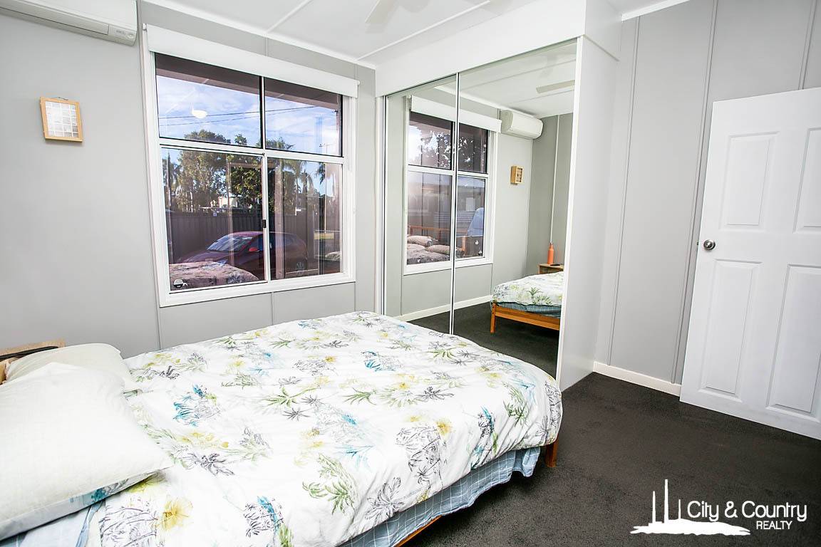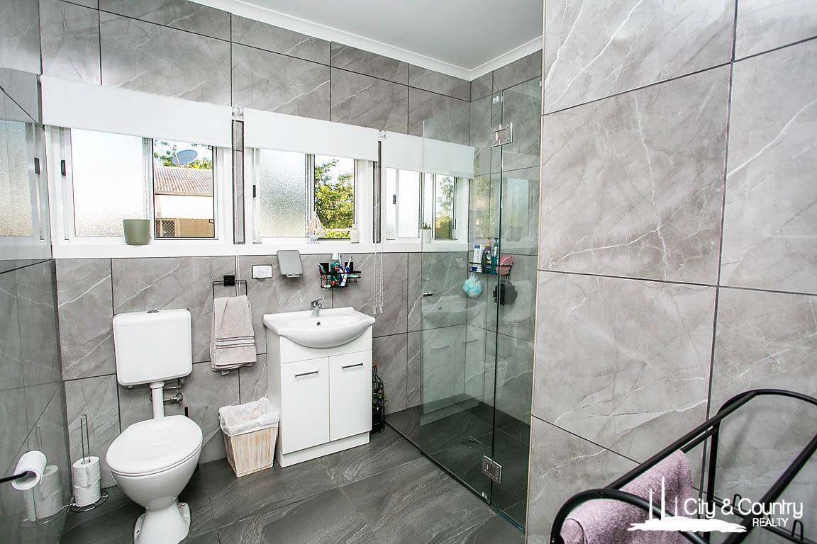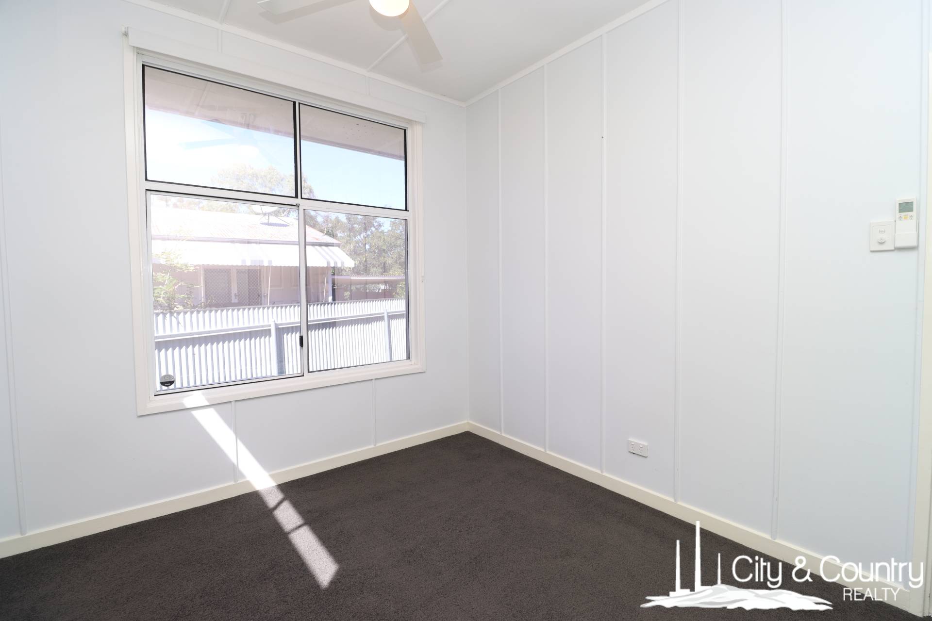 The spacious bedrooms feature built-in cupboards, fans, splits, and new carpeting. Everything in this home is new, including the blinds, floors, kitchen, bathroom, wiring, electrical, power points, carpet, and cupboards. Additional features include window locks and security screens, as well as mirror-tinted windows to aid in cooling during summer months.