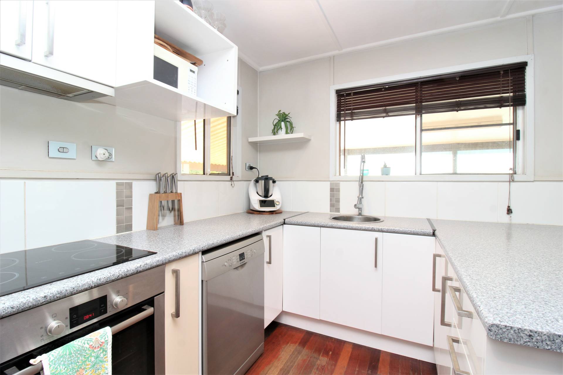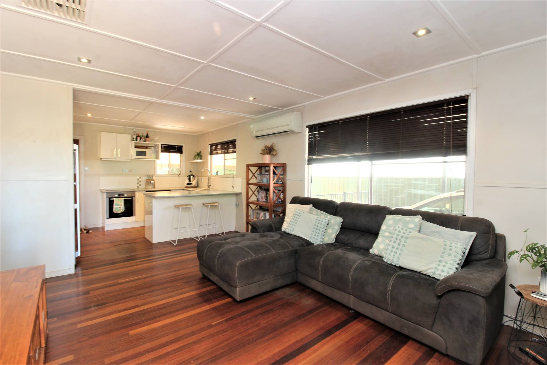 This cozy residence features a spacious kitchen with electric cooking and a dishwasher, along with a modern bathroom and three carpeted bedrooms, all with built-in wardrobes. Enjoy split system air conditioning in most rooms and beautiful timber floorboards.