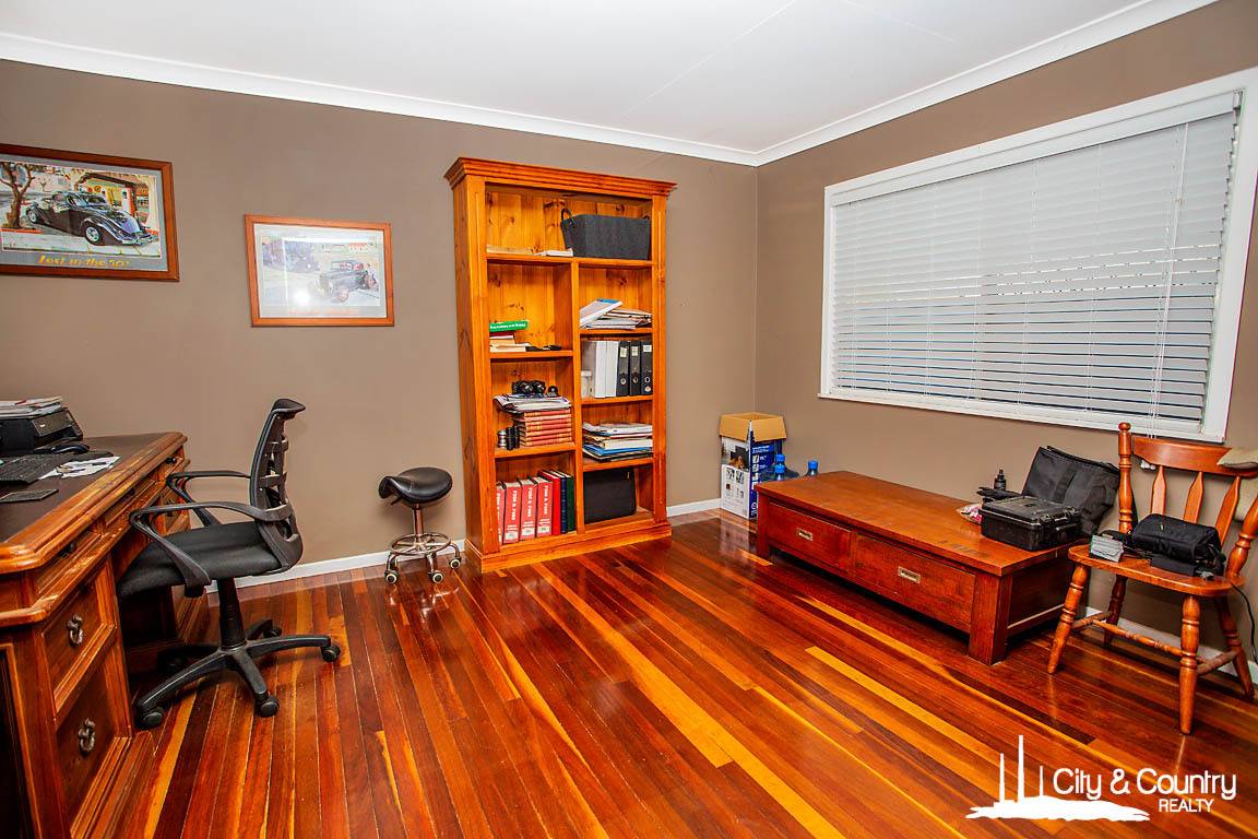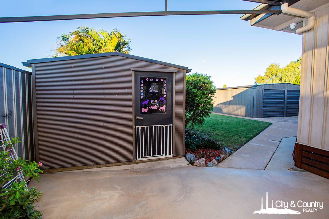 Outdoors, the property continues to impress with a fully air-conditioned, powered workshop that includes running water—ideal for trades, hobbies, or extra storage. There’s also a large double shed with power and built-in shelving, a concrete driveway, rear access, and dual driveway entry for added convenience. A triple carport and a single carport offer a total of six car spaces.