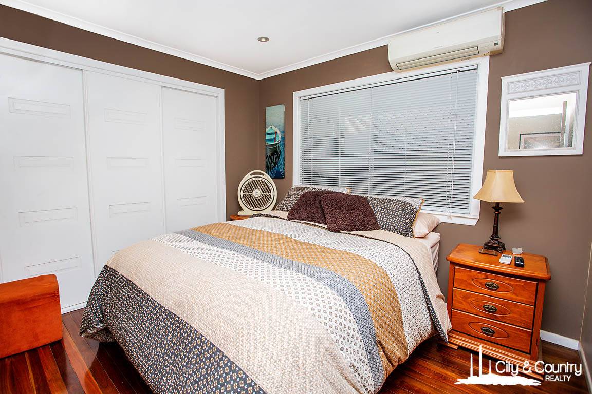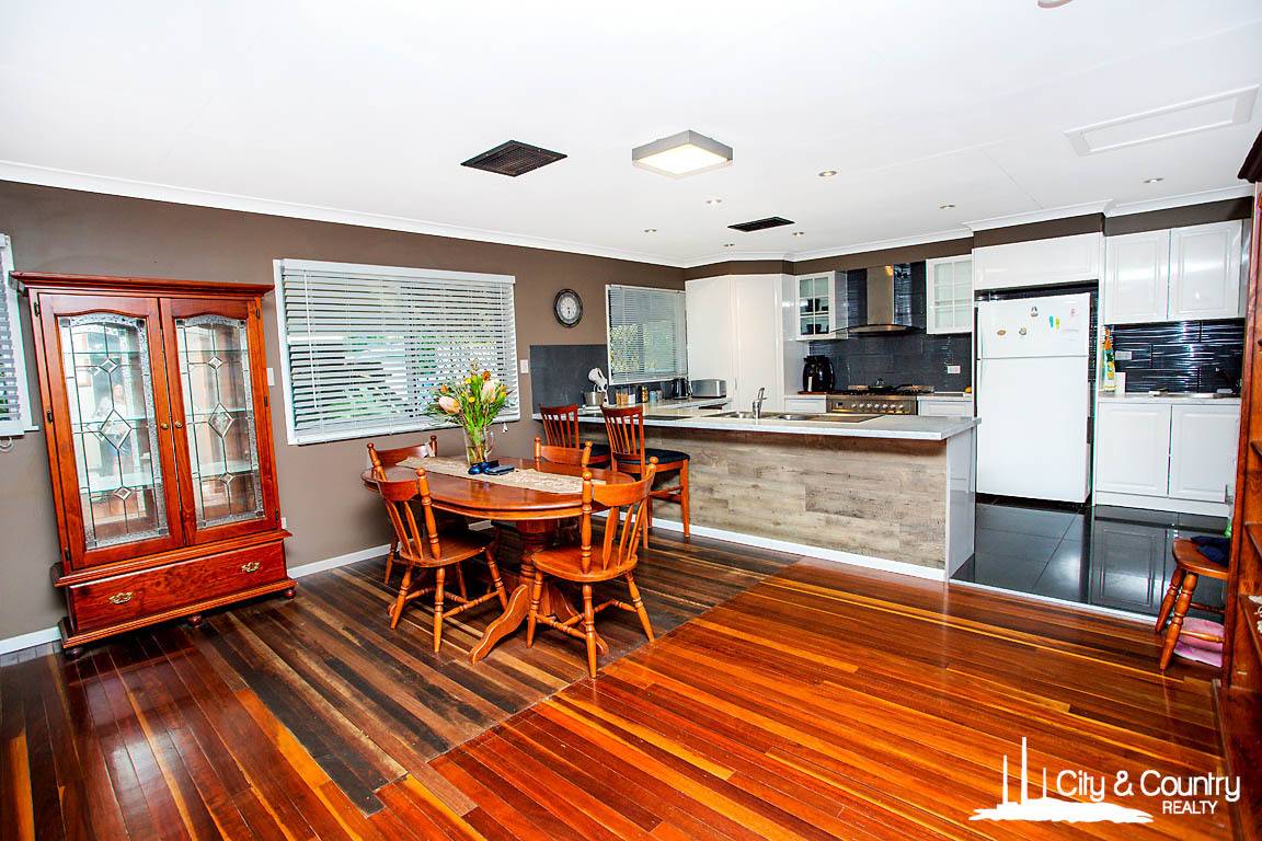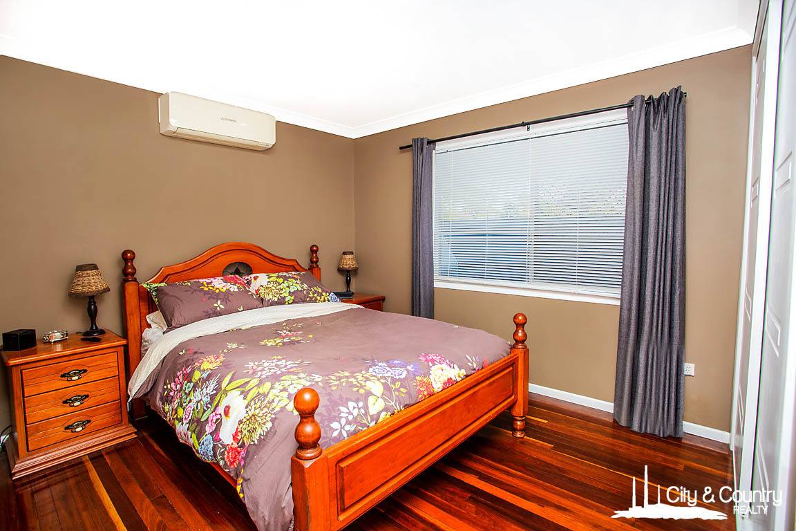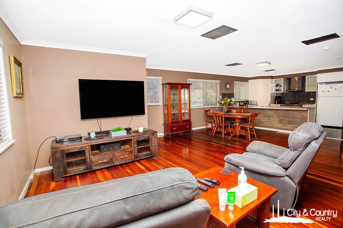 Inside, the home boasts four bedrooms—or three plus a spacious rumpus/living room—ideal for growing families or those needing extra space. The modern bathroom features a large vanity and a separate toilet for added convenience. A bright open-plan living and dining area is enhanced by timber floors and split system air conditioning throughout, creating a comfortable and inviting atmosphere year-round.