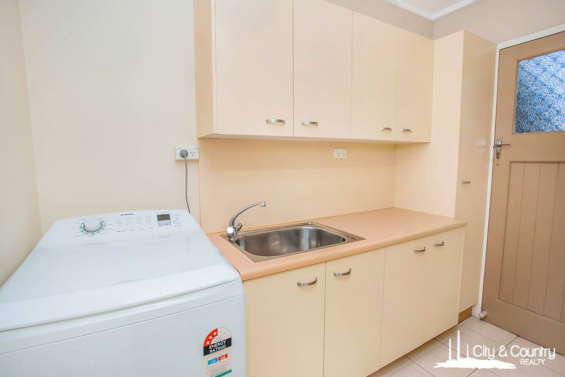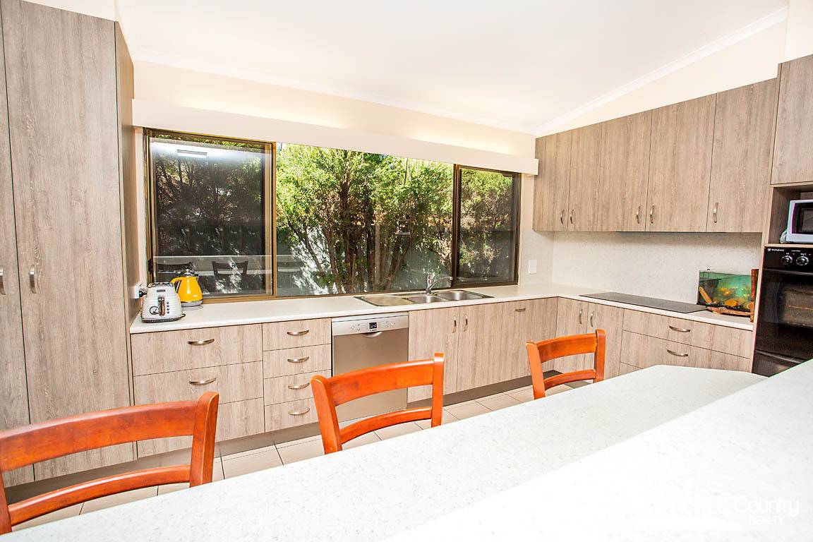 The impressive kitchen is both functional and beautiful, offering a large breakfast bar, dishwasher, oven, rangehood, and plenty of storage. Large, bright windows throughout the home flood the interiors with natural light, creating a warm and welcoming atmosphere.