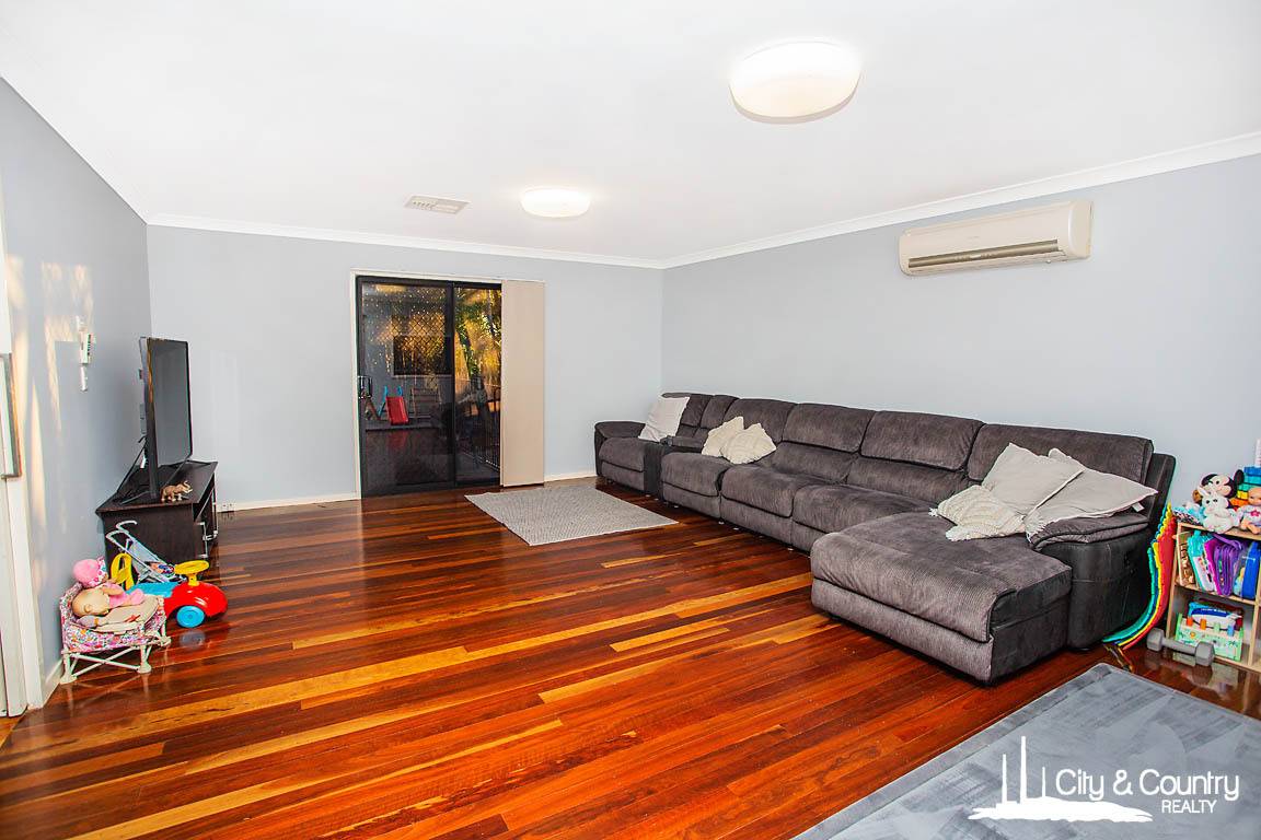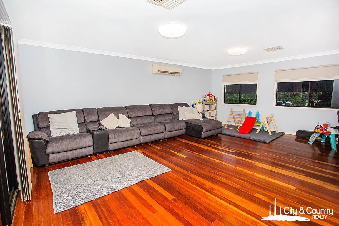 Inside, you’ll find four generously sized bedrooms, each with built-in wardrobes and split system air conditioning. The master suite also includes a sleek, modern ensuite for added privacy and convenience. Multiple living areas provide flexible space for everyone — from a large open-plan living and dining area to an additional rumpus or family room. Throughout the home, stunning polished timber floors add a touch of warmth and character.