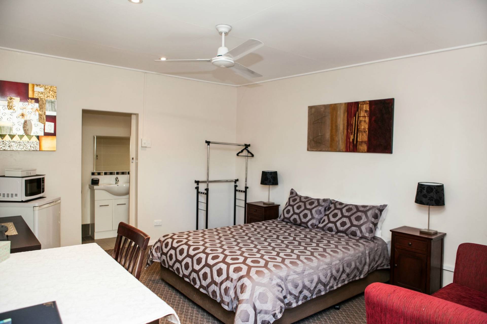Facilities in the 2 room motel/6 rooms including kitchenette, All rooms are fully airconditioned, Wifi Internet and Austar.